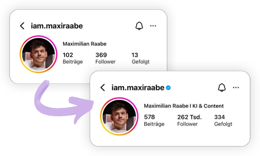 Dann bist du genau die richtige Person für diesen Workshop. Denn das hier ist keine ChatGPT-Bastelei, sondern ein System, das funktioniert - nachweislich, auch mit kleinen Accounts. Und nein, dafür musst du nicht technikbegabt oder KI-Profi sein.